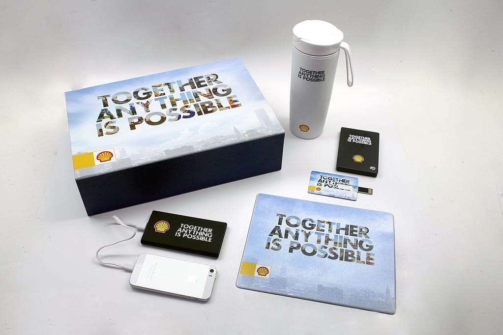 Prev Close Next Shell Giveaways Kit. Kit consists of branded hard box, Travel Mug, Power bank, Card Flash Drive and Mouse pad. Client: Shell Date: ??? Services: Giveaways Design and Production
